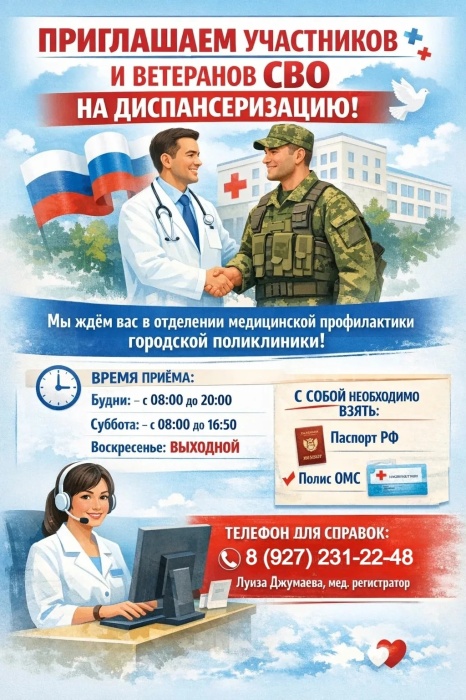 Уважаемые участники и ветераны СВО!Баймакская центральная районная больница приглашает вас пройти диспансеризацию в отделении медицинской профилактики